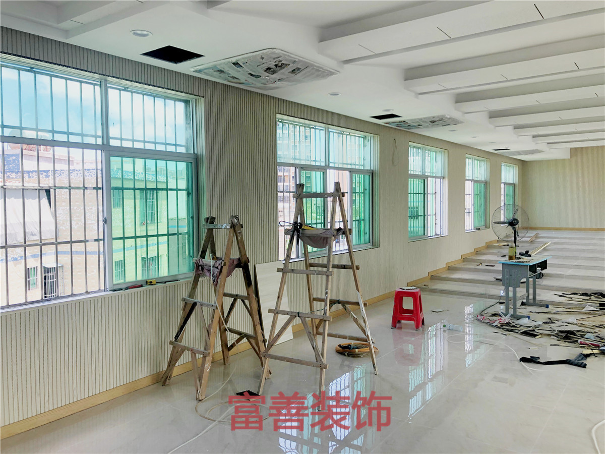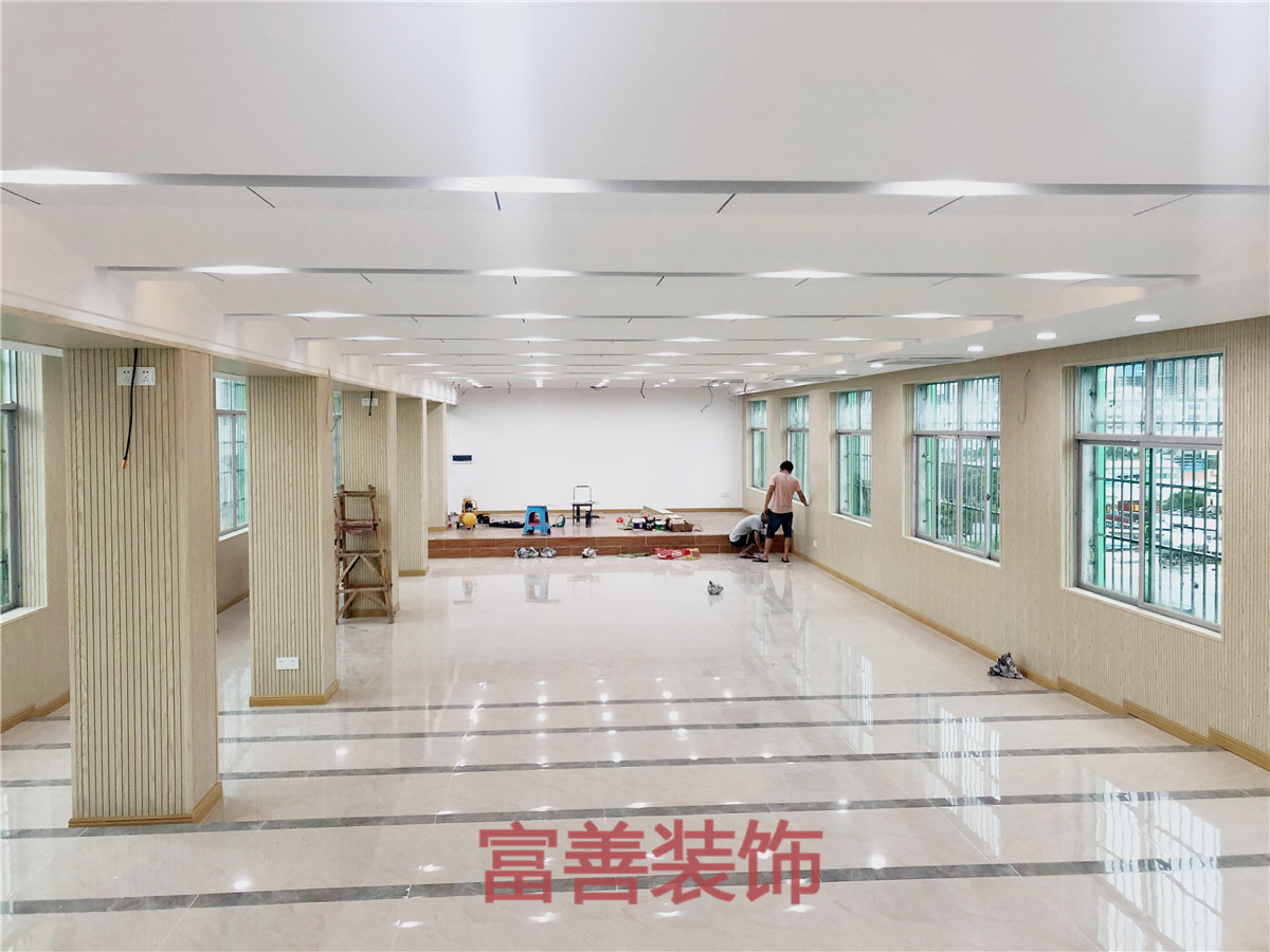 此次海口富善工程裝飾有限公司承接該校多功能廳的翻新裝修工程項目,以下圖片為本次施工實景圖集;